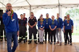 Vorstand des Vereins (in blau) v.l.n.r.: Nick und Katrin Mende, Michele Lewalder, Beatrice und Robert Körner, Thomas Leonard