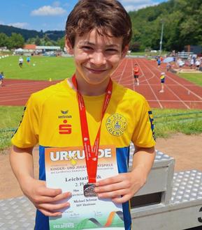 Michael (11) gewann in der M12 mit großem Vorsprung, souverän in 10,41s seinen Vorlauf über 75 m. Der Endlauf fiel buchstäblich durch das Unwetter in Bautzen ins Wasser. Eine Medaille hätte er im Endlauf verdient.
