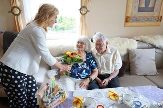 Bürgermeisterin Conny Oertel gratuliert dem Ehepaar Albrecht zur Eisernen Hochzeit.
