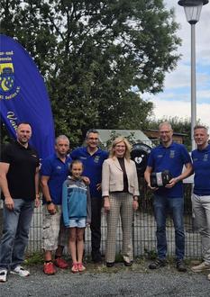 Die feierliche Übergabe des AED-Geräts fand am 22. Juli 2025 am Schulgebäude der Heinrich-Heine-Grundschule in Großsedlitz statt, gemeinsam mit der Bürgermeisterin Frau Oertel, die viele Jahre selbst als engagierte Hortnerin an dieser Schule tätig war.