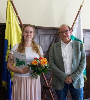 Bürgermeister Jürgen Opitz gratulierte Frau Johanna Fischer zur bestandenen Prüfung.