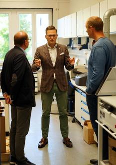 Bürgermeister Jürgen Opitz im Gespräch mit Dr. Martin Zahel (Geschäftsbereichsleiter Fasern & Composite PTS) und Dr. Thorsten Voß (Vorstand PTS)