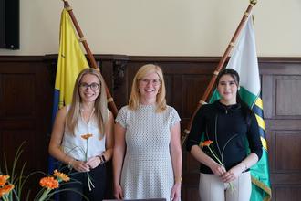 Selina Schanze und Angelina Horst wurden von Bürgermeisterin Conny Oertel zum Ausbildungsstart bei der Stadt Heidenau herzlich begrüßt.
