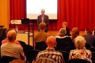 Herr Neumann von der STEG Stadtentwicklung GmbH informierte während der Einwohnerversammlung umfassend über die Ergebnisse der Bürgerumfrage.