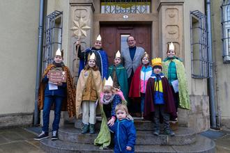 Am 9. Januar begrüßte Bürgermeister Jürgen Opitz die Sternsinger der Katholischen Gemeinde St. Georg Heidenau im Rathaus. In diesem Jahr setzen sich die Sternsinger besonders für Kinder unter dem Motto „Erhebt eure Stimme! – Sternsingen für Kinderrechte“ ein. Außerdem brachten die Sternsinger der Katholischen Gemeinde St. Georg den Segen "Christus Mansionem Benedicat" (Christus segne das Haus).