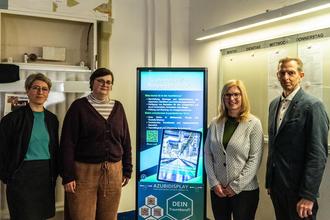 Mit Unterstützung des Azubidisplays können die Schüler herausfinden, welcher Beruf am besten zu ihnen passt. Sie lernen über 120 Berufsbilder kennen und erhalten Informationen zu Praktika, Ferienjobs und dualen Studiengängen. Mit dem ganzjährig verfügbaren Azubidisplay wollen wir Schüler für Ausbildungsplätze begeistern, in dem ihnen regionale Ausbildungsunternehmen vorgestellt werden.
