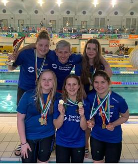 Am Samstag gehen dann unsere Staffeln an den Start. Die Mädchen der AK13/14 (Maja Drechsler, Mia Hollstein, Zoe Möbius, Emma Pätzold & Clara Pietzsch) starten über die Mittagszeit in ihrer 4 Staffelwettbewerbe. Ziel für das Team ist es, ihre Leistung aus den Landesmeisterschaften zu bestätigen. Die Konkurrenz ist groß, aber die Mädels sind gut vorbereitet.