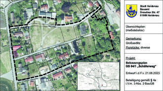 auf der Internetseite der Stadt Heidenau unter www.heidenau.de unter der Rubrik „Planen, Bauen & Fördern“, „Aktuelle Mitteilungen des Bauamtes“ sowie im Zentralen Landesportal Bauleitplanung unter der Webadresse www.bauleitplanung.sachsen.de digital zur Einsichtnahme bereit.