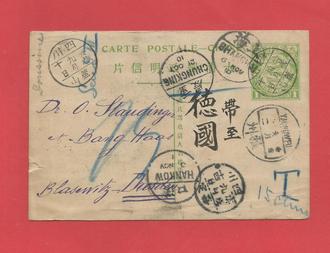 Sammelgebiet Briefmarken: Ganzsache von China nach Dresden Blasewitz 1899