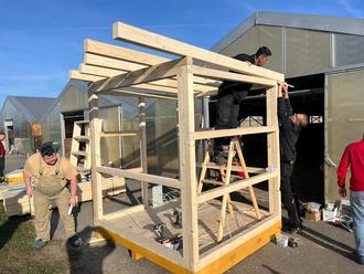 Alle packen mit an: die Bude für unser Pyramidenanschieben