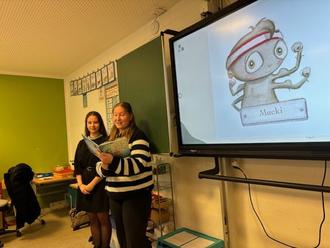 Lara und Melina hatten Spaß in der Klasse 1a und freuten sich über das Interesse der Kleinen.