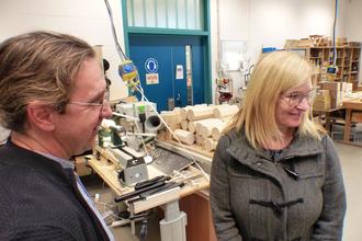 Herr Zschaler und Frau Oertel beim Rundgang im ZAB Zentrum für Arbeit und Bildung