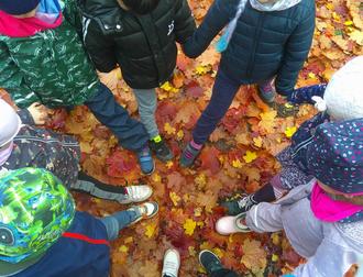 Die Kinder erleben den Herbst aktiv - ob beim Sammeln von Kastanien, Eicheln oder vielen Bunten Blättern in unserem Garten. Wir haben Freude beim Laufen durch das Laub und binden die Natur in unser Spiel ein.