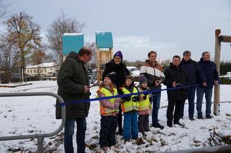 Feierliche Eröffnung des Spielplatzes mit Banddurchschnitt