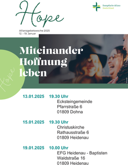 19. Januar, 10:00 Uhr Abschlussgottesdienst „Allianzgebetswoche“