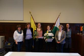 v.l.n.r. Anja Geißler, Amtsleiterin Sylvia Röder, Lisa-Marie Angermann, Lea Oberknapp, Erste Beigeordnete Marion Franz und Marie Liebal