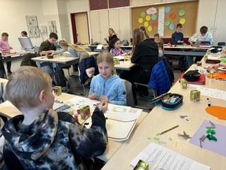 – ein gemeinsames Unterrichtsprojekt mit den Großen im Pestalozzi-Gymnasium – 16 Viertklässler unserer Astrid-Lindgren-Grundschule bearbeiteten die Fabel von Äsop, lasen sie, besprachen sie und fertigten gemeinsam verschiedene Collagen an.