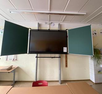 Die Heidenauer Schüler lernen nun mit Hilfe digitaler Anzeigegeräte der Firma Newline (Lyra TT-7521Q) in 75 Zoll oder 86 Zoll, angepasst an die jeweilige Größe der Klassenräume. Die Höhenverschiebung durch eine Pylonenführung wurde hierbei ermöglicht, um den unterschiedlichen Anforderungen sowie der vielseitigen Unterrichtsgestaltung gerecht zu werden. An fast allen digitalen Displays sind magnetische Tafelflügel rechts und links befestigt, damit eine Kreidenutzung weiterhin möglich ist.