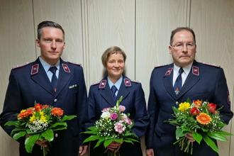Neu gewählte Wehrleitung: Wehrleiter Holger Berg, Stellvertreterin Marika Rosenberg und Stellvertreter René Pelzer
