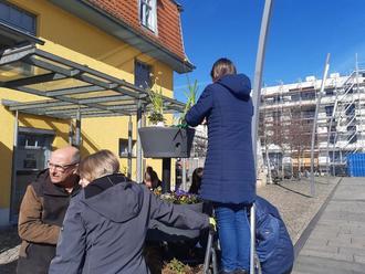 Mit vielen Helfern ging das Bestücken der Pflanztürme am Stadthaus besonders schnell.