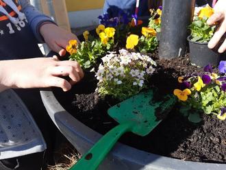 Die 7b bewies bei der gemeinsamen Bepflanzung der beiden Blumentürme mit farbenfrohen Frühlingsblumen viele grüne Daumen. Hilfreiche Tipps und Unterstützung erhielten die Jugendlichen dabei von den Schülerinnen und Schülern der Produktionsschule des CJD Heidenau. Abschließend bekamen alle eine Urkunde für eine Pflanzpatenschaft.