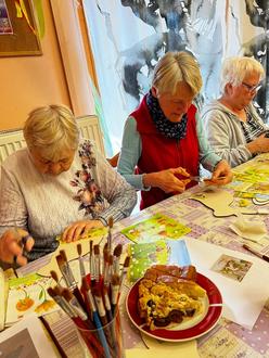 Beim fleißigen Basteln und leckerem Kuchen konnten sich die Teilnehmer angeregt unterhalten.
