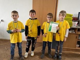 Vier Jungen: Erik, Marvin, Moritz und Maxim aus unseren 2. Klassen erkämpften in Leipzig in 7 Runden einen guten 6. Platz (von 16 Mannschaften).