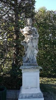 Um nur einige zu nennen: Flora und Pomona, die Personifikationen der Blüten und der Baumfrüchte, säumen in Vielzahl das Boulingrin seitlich der oberen und oberhalb der unteren Orangerie. (Abb. 3) Gegenüber der unteren Orangerie sind die ursprünglichen Besitzer der goldenen Äpfel, Zeus und Hera, in Szene gesetzt, zu ihren Seiten die Personifikationen der Jahreszeiten, die im Orangeriegarten für die ewige Wiederkehr stehen. Herkules, der die goldenen Äpfel raubte, als Sinnbild des Landesherrn selbst, findet sich im Boskett, an der bis weit nach Böhmen zielenden Achse. (Abb. 4) Zahlreiche weitere Allegorien dieser Zeit verbildlichten im Garten weitere Aspekte, verwiesen letztlich auf die ausstrahlende Macht des Landesherrn.