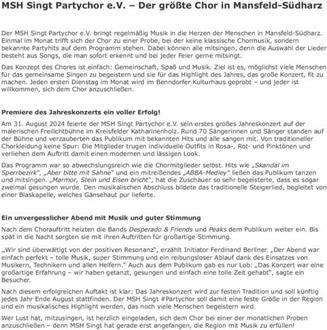 MSH Singt Partychor e.V. – Der größte Chor in Mansfeld-Südharz