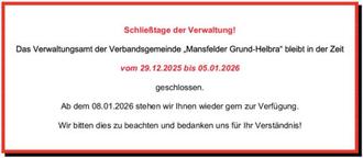 Nächster Artikel: Bekanntgabe der Beschlüsse der Sitzung des Haupt-, Finanz-, Bau- und Vergabeausschusses der Gemeinde Helbra vom 24.09.2025