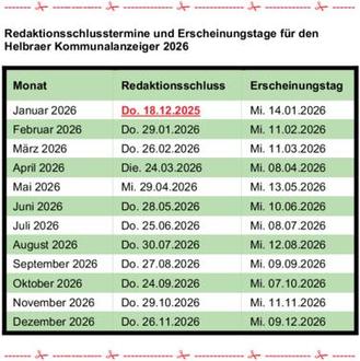 Dezember 2026 Do. 26.11.2026 Mi. 09.12.2026