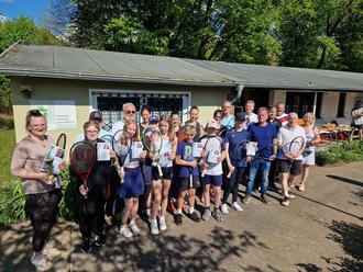 Die Kinder freuten sich dann aber auch noch über jeweils eine Urkunde für die gewonnenen Schleifchen und die Veranstalter über das gelungene Turnier bei schönem Tenniswetter.