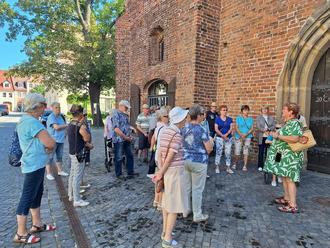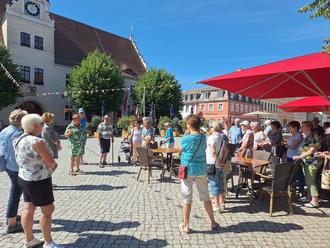 Vom 17. bis zum 21. Juni trafen sich die Senioren zu unterschiedlichsten Projekten und Aktionen um gemeinsam ihre Stadt und Umgebung aktiv zu entdecken und eigene Kräfte neu zu mobilisieren. Schon der Start am Montagnachmittag im Saal des Bürgerzentrums sprühte vor Lebenslust und Freude. Es galt, zu den beliebten Klängen des „Duo Passion“ mit Ramona Schneider und Andreas Fehse vier Stunden lang das Tanzbein zu schwingen und bei beliebten Melodien, Kaffee und Wein den kommenden Sommer zu feiern. Euphorisch verabschiedete man sich für den nächsten Tag, um mit Frau Barbara Hackenschmidt den Spuren der legendären Brandenburgerin Regine Hildebrandt in Herzberg (Elster) zu folgen. Viele interessante und lustige Anekdoten kamen an der gemütlichen Kaffeetafel mit dem berühmten Frankfurter Kranz, der natürlich nicht fehlen durfte, zu Tage. Musikalisch ging es am Mittwoch zum Singen altbekannter Volkslieder in der Stadtkirche St. Marien weiter. Der Chor „pro musica“ unter Leitung von Frau Daniela Uhlig luden gemeinsam mit Pfarrer Alexander Barth und Kantorin Solveig Lichtenstein zur beliebten Mittwochsmusik. Im Pferdekrafttempo machte man sich am Donnerstag gen Kleinrössen auf den Weg. Unterwegs galt es, durch Frau Kappes und Frau Dobrzynski phantasievoll vorbereitete Spiele auf der Stadtrrallye zu meistern, um am Ende ein schönes Stadtpuzzle zusammenfügen zu können. Schon bei der ersten Station, dem Bogenschießen im Elsterpark entdeckte so manche(r) bisher schlummernde Talente und Potenziale. Sehr willkommen war dann die Stärkung mit Kaffe, frischem Kuchen und Würstchen in der idyllischen Bauernscheune im Naturschutzzentrum. Bei weiteren Talenteproben im Garten fanden sich schnell die fehlenenden Puzzleteile, so dass sogar noch Zeit für eine kleine Führung durch Frau Lehmann in der romatischen Dorfkirche blieb. Am Freitag gesellte sich die Tagespflegegruppe des DRK im Elsterpark zu den Akteuren. Beim Kreativtag mit Spiel, Spaß und Sport mit Handicap konnten unterschiedlichste Fähigkeiten staunend unter Beweis gestellt werden.