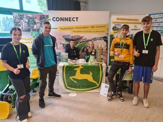 Pia, Luca und Jason (v.l.n.r.) am Messestand mit Herrn Ludwig Zimmermann (2.v.l.)