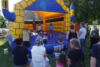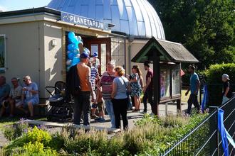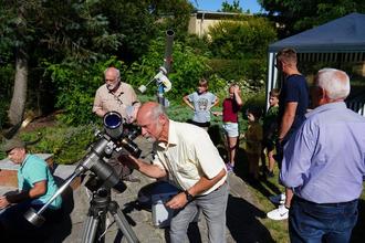 25 erfolgreiche Jahre für und mit den Herzberger BürgerInnen sollten nicht nur Fachpublikum vorbehalten bleiben und so war klar, dass es eine Spur größer ausfallen muss: Und so wurde kurzerhand die Wiese vor dem Planetarium mit Hüpfburg und Bastel-Zelt aufgemotzt, dazu eine komplette Ausstellung zum Sonnensystem im benachbarten Klassenraum der ehemaligen Schule auf die Beine gestellt. Im Planetariumsgarten fanden erst die Teleskope, später dann die musikalische Unterhaltung durch Live-Band Platz und selbst der Gehweg hielt für astronomische Experimente her. Und weil auch das nicht reichte, gab es obendrein noch mehrere Führungen auf den Wasserturm zur Sternwarte. Viele Besucher nutzten den Nachmittag und die bunte Vielfalt an Angeboten und bewiesen, dass in Herzberg die Astronomie ein Gemeinschaftsprojekt ist.