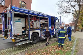 Und um das unter Beweis zu stellen, holten wir uns Unterstützung von Heike Heimes und ihren Kolleginnen und Kollegen vom THW Ortsverband Herzberg. Nach einer spannenden Geschichte über die Rettung von Verschütteten, konnten die Schüler der Förderschule im Anschluss auch die Technik des THW in Augenschein nehmen. Natürlich inklusive Klettertour in und durch den eindrucksvollen Gerätewagen, welcher mit einer überwältigenden Vielfalt von Rettungsgerät vollgestopft ist.