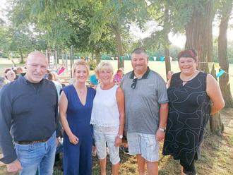 Verabschiedung der Ortsvorsteherin am 20.7. mit dem halben Dorf v. l. n. r. Gerd Rothaug, Stephanie Kuntze, Regina Köhler, Silvio Dorn und Beatrice Janosch