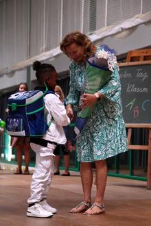 Mahir erhält die Zuckertüte von Frau Michaelis