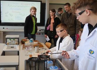 In der Oberschule gab es gleich mehrere Highlights zu bestaunen. Die Schulband zeigte ihr musikalisches Können. Schüler erklärten, welche Rolle unser Schulhund Balu im Unterricht spielt und demonstrierten, wozu er ausgebildet ist. Das neue Fach Feuerwehrunterricht wurde sozusagen zum Anfassen vorgestellt. Beim Knobeln und Experimentieren konnten sich alle kleinen und großen Besucher in den MINT-Fächern Mathematik, Informatik, Naturwissenschaften und Technik ausprobieren. Das macht schon Spaß!