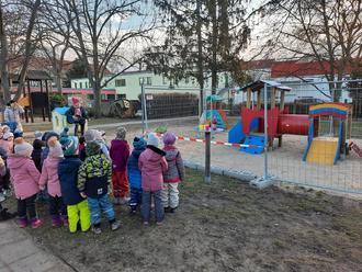 Am 7. Januar war es endlich so weit! Das neue Spielgerät wurde eingeweiht. Zu Beginn sangen alle Kinder ein Lied und anschließend wurde mit Kindersekt angestoßen, den unsere fleißigen Küchenfrauen verteilten. Liam K. schnitt mit einer großen Schere das Absperrband durch und sogleich wurde das Spielgerät von den Kindern in Besitz genommen. Immer wieder hörten wir dabei Freudenrufe und Kinderlachen von glücklichen Kindern.