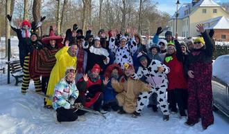 Grochwitz, 10. Januar – Der Mut hat sich ausgezahlt. Trotz Sturmwarnungen, eisiger Temperaturprognosen und der kurzen Überlegung, das Zampern abzusagen, zeigte sich der Winter am Samstag von seiner freundlichsten Seite. Bei strahlendem Sonnenschein und blauem Himmel zogen 34 Zamper*innen durch den ehemaligen Herzberger Ortsteil Grochwitz und sorgten mit Musik, guter Laune und bunten Kostümen für ein fröhliches Dorfbild.