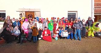 Am 10. Februar 2024 wurde im Ortsteil Buckau wieder gezampert. Bei schönstem Sonnenschein ging es traditionell in kunterbunten Kostümen von Hof zu Hof.