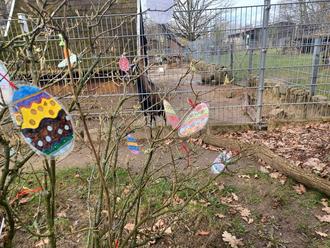 Passende Dekoration zum Osterfest durfte natürlich auch in unserem Tierpark nicht fehlen. Da der Lagerbestand an bunten Eiern in den letzten Jahren jedoch deutlich schrumpfte, rief Frau Enigk, Leiterin des Tierparks, alle Herzberger Kitas auf neue farbenfrohe Osterdekoraktion zu basteln. Diesem Aufruf folgten alle Kindergärten und der Hort sehr gern. Egal ob aus Papier oder Bügelperlen, ob Ei oder Blumenkranz, zahlreiche, von den Kindern selbstgestaltete Figuren schmückten zur Osterzeit den Tierpark.