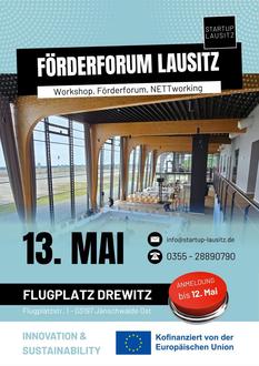 wir laden Sie herzlich zu unserer Veranstaltung "Förderforum & Netzwerkabend" ein, die am 13. Mai 2025 auf dem Flugplatzgelände in Drewitz stattfindet.