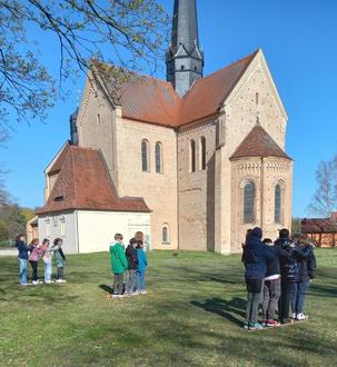 So machte sich auch die Klasse 5c mit ihrer Lehrerin und 2 begleitenden Muttis auf den Weg ins Schloss nach Doberlug. Schon die Anreise mit dem öffentlichen Linienbus zeigte den Kindern, wie viele Dörfer man durchfahren kann, um in die Mitte unseres Landkreises zu gelangen.