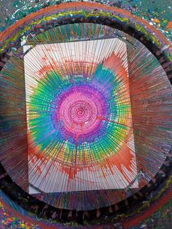 Mit der "Farb-Schleuder" enstanden bunte Kunstwerke