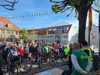 Getreu dem Motto „Natur und Kultur per Rad entdecken“ starteten 45 Radler auf die 43 km lange Tour an der Kirche St. Marien in Herzberg (Elster‘). Vorab erfuhren die Gäste bei einer kurzen Kirchenführung in der Herzberger Stadtkirche St.Marien Wissenswertes und Historisches zum Kirchengebäude und dem Luther- und Melanchthon-Erbe. Per Rad startete die Truppe mit Glockenschlag 10 Uhr unter Leitung von Ines Jacobi in südwestlicher Richtung zum Gotteshaus in Buckau, ein empfehlenswerter Kulturgenuss der besonderen Art.