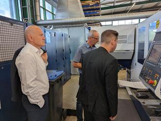 Bei einem Rundgang durch die Metallwerkstatt mit der Geschäftsleitung, vertreten durch Karsten Koch und Mirko Weise, haben Hannes Walter und Karsten Eule-Prütz einen Einblick in die Metallverarbeitung bekommen. Mit den hergestellten Produkten beliefern die ELSTER WERKE zum Beispiel Unternehmen im Fahrzeugbau und Sonderfahrzeugbau, und zwar nicht nur in der Region, sondern deutschlandweit.