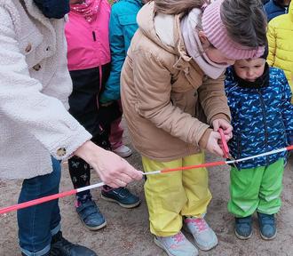 Die Sonne lacht und lockt die Menschen wieder für längere Zeit nach draußen, auch die Kinder der Kita „Spatzennest". Sehr beliebt ist bei ihnen der Rollergarten. Doch nach viel Regen und bei großer Trockenheit war er für die Kinder nicht mehr gut nutzbar. Darum überlegte die Leiterin A. Schönemann gemeinsam mit dem Facility Manager M. Claußner, wie der Rollergarten für die Kinder wieder attraktiver und besser nutzbar gemacht werden kann. Erde wurde von den Wegen abgetragen und wieder neu verfüllt. Die Grünflächen zwischen den Wegen wurden aufgefüllt und neuer Rasen angesät. Dabei erhielt der Hausmeister der Kita K. Tischer von den drei Hausmeistern der Schule E. Eckert, N. Röhner und M. Voigt kräftige Unterstützung. Als Team schufen sie für die Kinder einen neuen attraktiven Spielbereich. Ein großes Dankeschön an dieser Stelle für die gute Zusammenarbeit. Aber nicht nur der Spaß am Fahrzeug-Fahren soll bei den Kindern im Vordergrund stehen. Wir als Erzieher*innen wollen den Kindern auch erste Grundkenntnisse über das Verhalten im Straßenverkehr vermitteln. Deshalb werden noch einige Schilder, wie z.B. Hauptstraße, Stop und Fußgängerüberweg aufgestellt. Damit wollen wir den Kindern helfen, einfache Regeln im Straßenverkehr zu beachten und zu wissen, an welchen Stellen die Straße sicher überquert werden kann. Feierlich wurde nun am 24.04.2024 unser neuer Verkehrsgarten eingeweiht, das Absperrband durchtrennt und sogleich von den Kindern mit viel Freude genutzt.