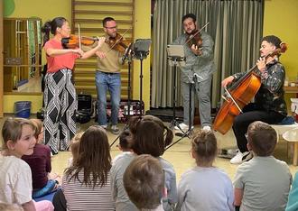 Die Umgestaltung vom Sportraum zu einem Klassic-Musiksaal gab es in der integrativen Kita „Märchenland“ noch nicht. Wie ein Zauber breiteten sich die besonderen Stücke von Haydn, Brahms, Beethoven und Mendelssohn Bartholdy in den Ohren der Zuhörer aus. Ein Genuss, bei dem die Krippen- und Kindergartenkinder gespannt lauschten. Ebenso freuten sich die ältesten Konzertbesucher, Gäste aus dem Seniorenheim „Albert-Schweitzer“, über den Auftritt der Künstler aus Österreich, Brasilien, Australien, Spanien und Israel. Unser Geburtstagskind Tessa bekam ganz allein für sich einen ordentlichen Tusch. Wir bedanken uns für diesen Auftritt auf’s Herzlichste, auch bei den Förderern und Sponsoren in Kooperation mit den Brandenburger Sommerkonzerten. Schön, dass wir ein Teil der Tournee sein durften.